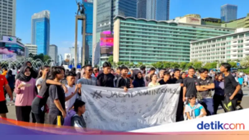 Pantauan detikcom di lokasi pada Minggu (26/4/2026), para pelajar membentangkan kain putih di sekitar Monumen Selamat Datang. Kain tersebut kemudian ditandatangani oleh warga yang melintas dan beraktivitas di sekitar area CFD. Aksi diawali dengan jalan sehat di Bundaran HI, kemudian mereka berhenti untuk mengajak warga membubuhkan tanda tangan sebagai dukungan terhadap petisi.