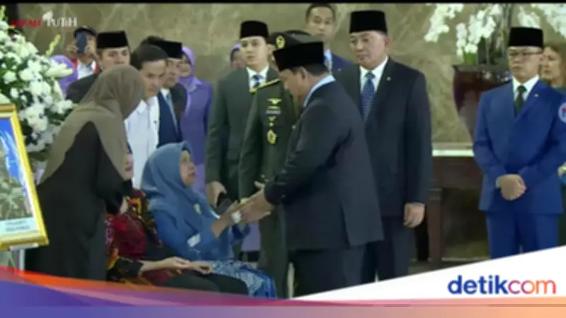 Pantauan di lokasi menunjukkan keluarga prajurit duduk di depan peti jenazah dengan raut wajah yang dipenuhi kesedihan dan tangis. Prabowo, yang tiba di area utara acara, langsung berbelok untuk menemui mereka. Saat dihampiri oleh Presiden, keluarga prajurit tak kuasa menahan tangis, menciptakan suasana yang mengharukan.