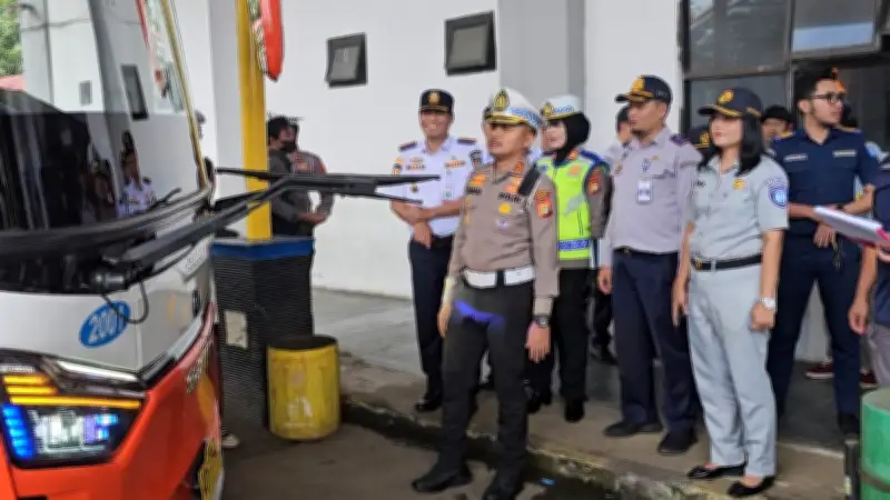 Menjelang arus mudik Lebaran 2026, petugas gabungan melakukan pemeriksaan menyeluruh terhadap awak bus di Terminal Jatijajar, Depok. Inspeksi ini tidak hanya mencakup kelayakan armada, tetapi juga mencakup pemeriksaan kesehatan dan tes urine untuk memastikan keselamatan perjalanan pemudik.